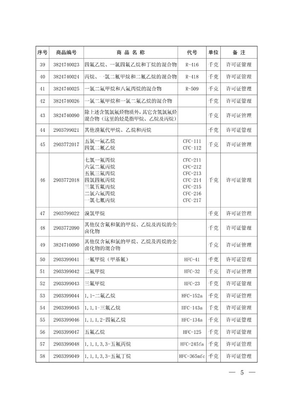 《中国进出口受控消耗臭氧层物质名录(第五批)》(环发〔2009〕161号)