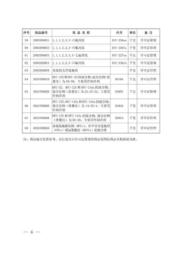 《中国进出口受控消耗臭氧层物质名录(第二批)》(环发〔2001〕6号)